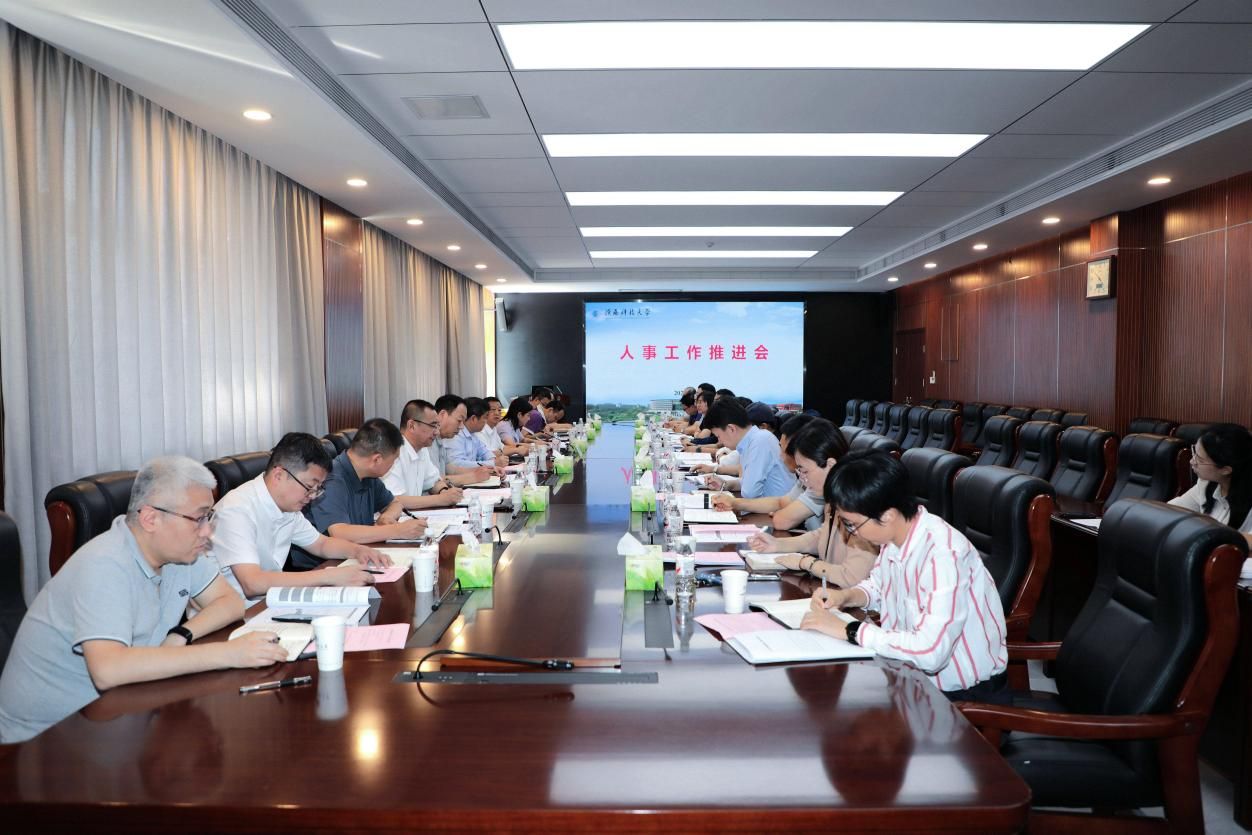 會上,人事處匯報省級人才項目申報進展及近期重點工作,輕工科學與工程學院、電子信息與人工智能學院分別就博士后招收培養和集成電路研究院建設作經驗交流。