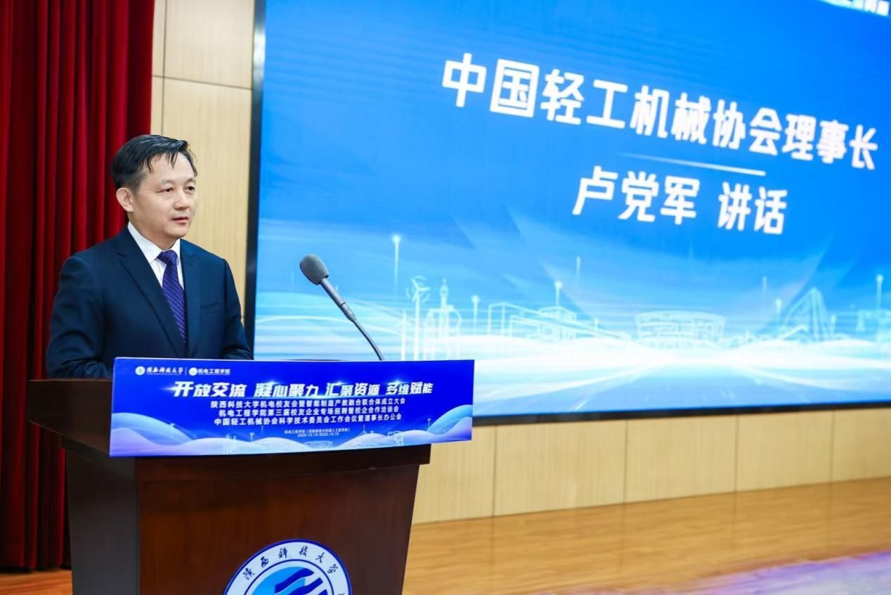 10月17日,陜西科技大學機電校友會暨智能制造產教融合創新聯合體成立大會在圖書館報告廳舉行。大會以“開放交流、凝心聚力、匯聚資源、多維賦能”為主題,旨在匯聚校友力量、深化產教融合,助力學校“大輕工”學科體系建設與高質量發展。校長黃劍鋒,副校長馬力,中國輕工業聯合會黨委副書記、76級機械專業校友王世成,中國輕工機械協會理事長盧黨軍,西北輕工業學院原副院長尚久浩參會。機電工程學院院長楊立軍主持會議。