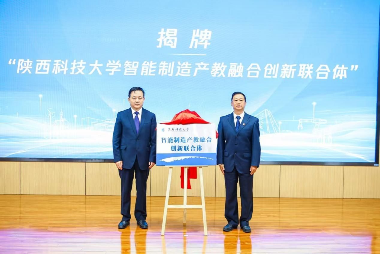 在隨后舉行的“智能制造產教融合創新聯合體”揭牌儀式上,黃劍鋒與盧黨軍共同為聯合體揭牌,并為企業專家頒發聘書。聯合體與西安吉利、中國輕工機械協會、克林輕工、數碼大方等單位現場簽約,將在人才培養、技術研發、產業孵化等方面開展深度合作。