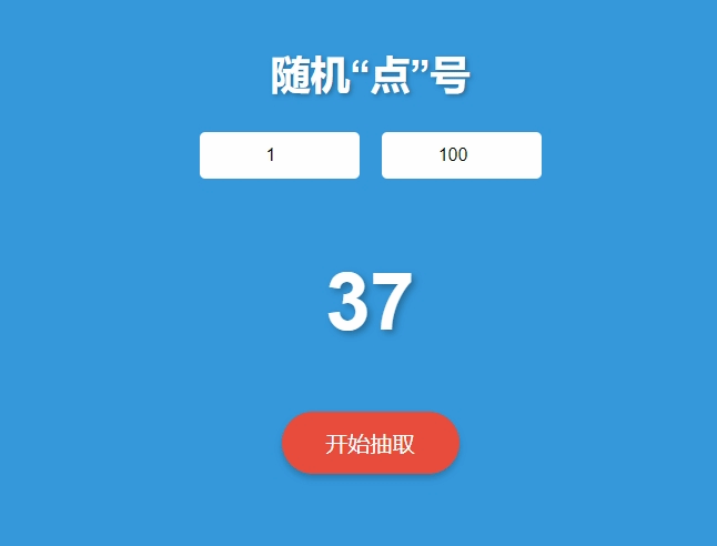 “隨機(jī)’點(diǎn)’號”提示詞:幫我做一個(gè)課堂隨機(jī)點(diǎn)名的網(wǎng)頁,雙擊就能運(yùn)行。要求網(wǎng)頁背景是藍(lán)色風(fēng)格。頂部顯示“隨機(jī)’點(diǎn)’號”大標(biāo)題。標(biāo)題下為數(shù)字輸入,分兩部分,開始數(shù)字和結(jié)束數(shù)字。中間區(qū)域用來隨機(jī)抽取顯示前面設(shè)置好的數(shù)字。這個(gè)部分要突出顯示,加大加粗。底部有“開始抽取”按鈕。點(diǎn)擊按鈕開始快速隨機(jī)滾動(dòng)數(shù)字。再次點(diǎn)擊按鈕則暫停,藍(lán)色加粗突出顯示被選中的數(shù)字。在使用說明中清楚寫出如何調(diào)試。