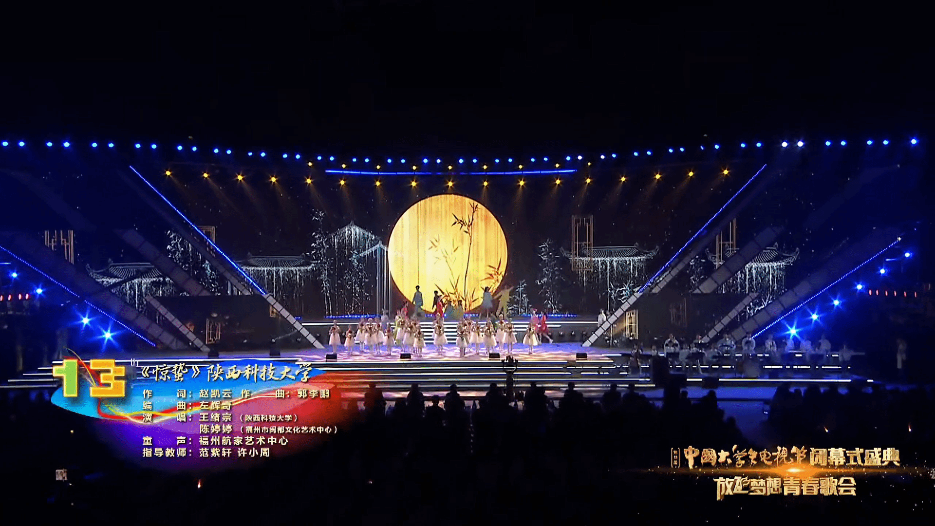 本屆中國大學生電視節閉幕式盛典由中宣部文藝局、教育部思政司指導,中國教育電視臺主辦,福建省教育廳、福州市人民政府聯合承辦,我校選送的校園歌曲《驚蟄》作為2024年度全國十大"新時代優秀原創校園歌曲"獲獎作品,與中央音樂學院、北京郵電大學、中山大學、西華大學、南京信息工程大學等在內的九所高校獲獎作品在閉幕式盛典上同臺亮相。