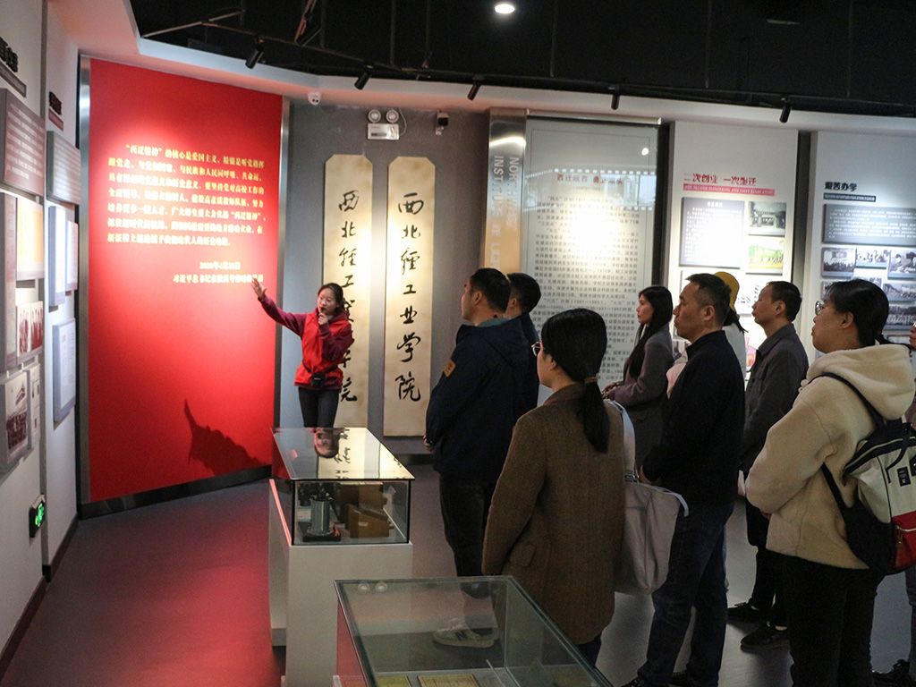 活動伊始,新進教師滿懷敬意參觀校史館與博物館。在講解員引導下,沿著時間脈絡,回顧學校自 1958 年北京輕工業學院創立,歷經西遷咸陽、更名為西北輕工業學院,直至遷到西安并更名為陜西科技大學的艱苦歲月與輝煌歷程。珍貴的歷史照片、斑駁的教學儀器、褪色的教案手稿,生動展現老一輩西遷人“聽黨指揮、跟黨走”的家國情懷和“自強不息、艱苦奮斗”的創業精神。