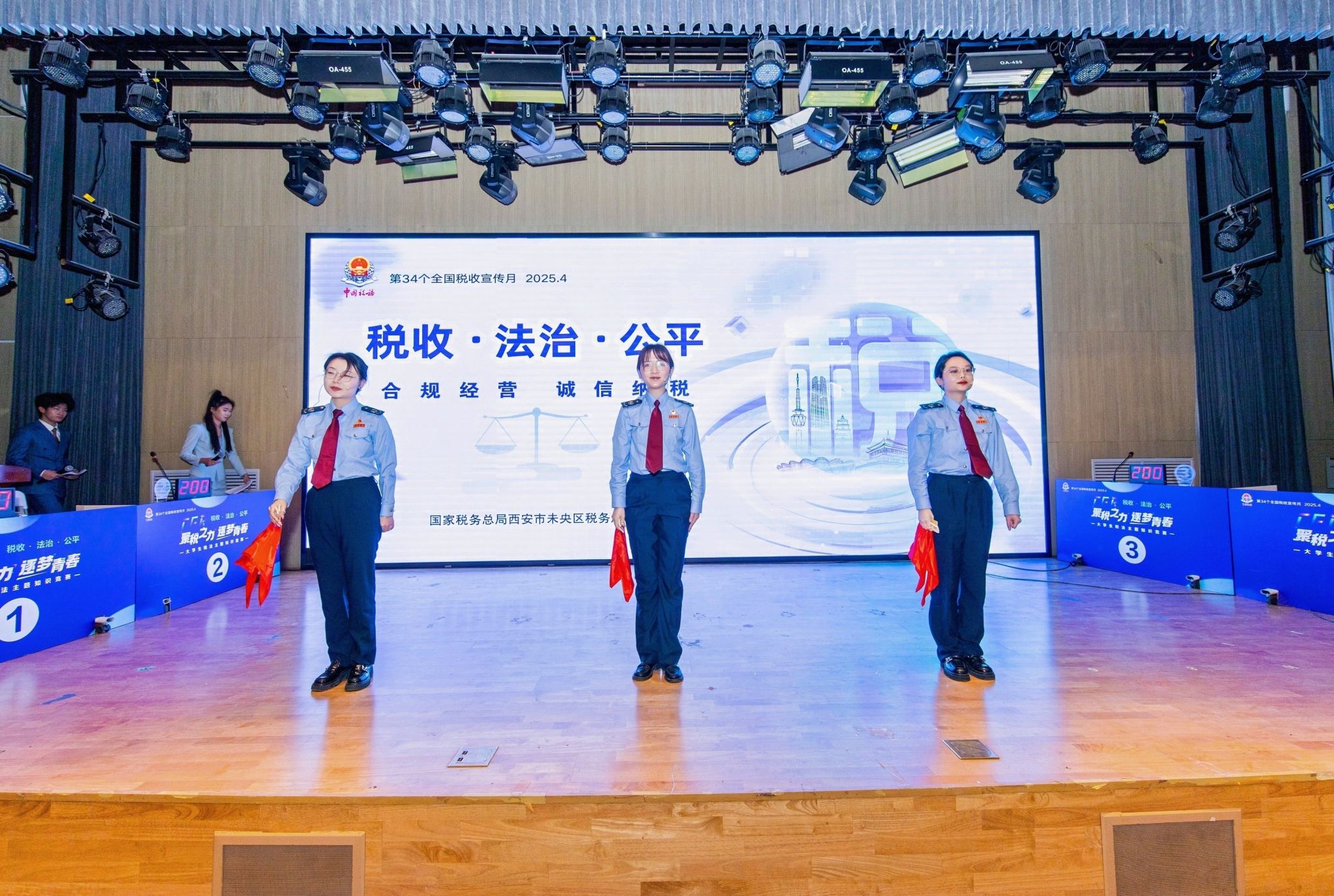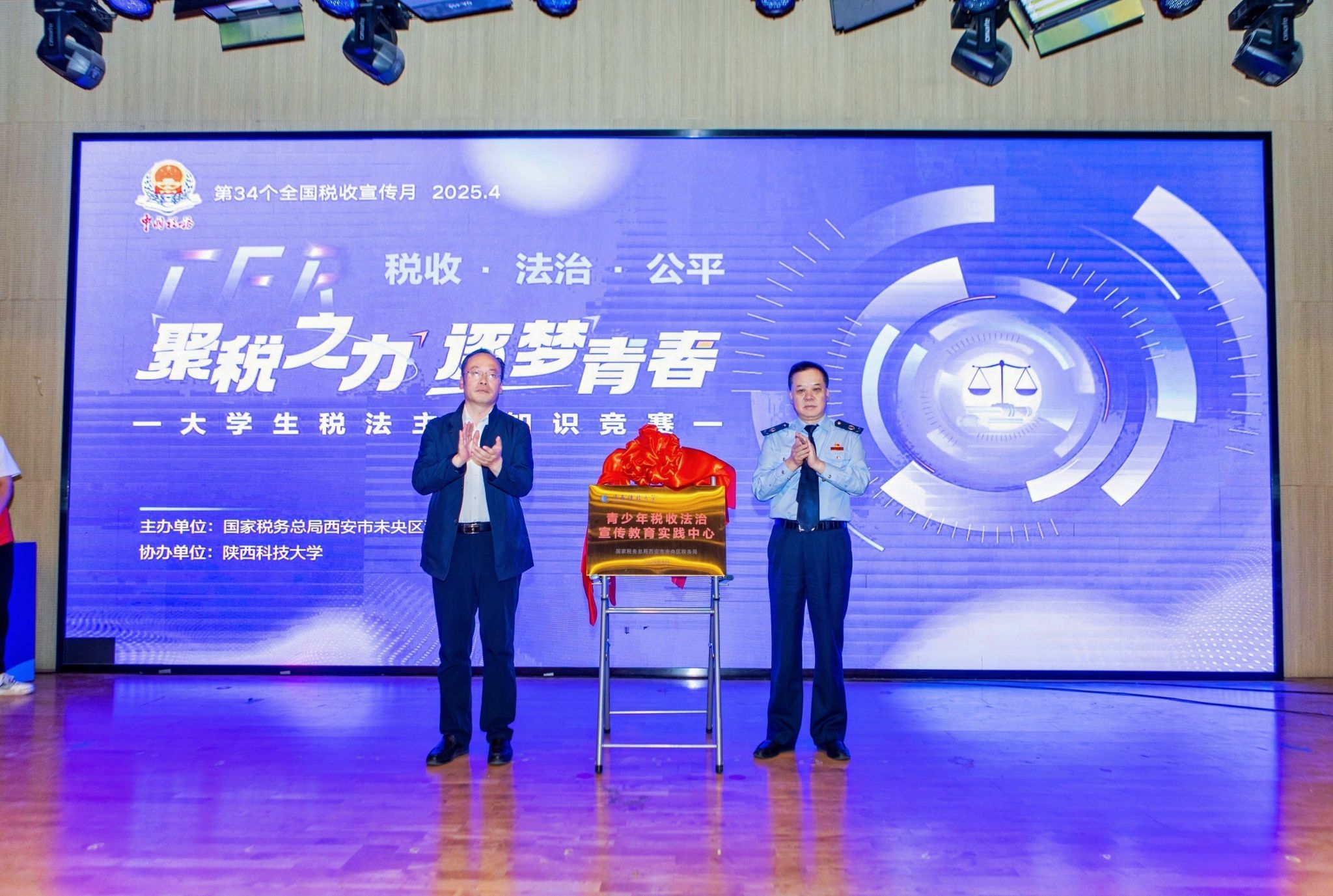 芳菲四月春風暖,多彩稅宣正當時。在第34個全國稅收宣傳月期間,國家稅務總局西安市未央?yún)^(qū)稅務局走進我校,與我校師生共同舉辦“聚稅之力 逐夢青春”大學生稅法主題知識競賽,集中宣傳稅法知識,攜手拓展稅收共治格局。黨委委員、副校長黃海峙與未央?yún)^(qū)稅務局黨委書記、局長張東選出席活動并致辭,共同表達對深化稅校合作、培育法治人才的熱切期待。