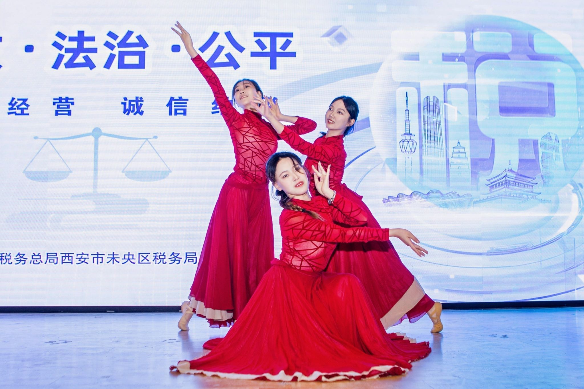 活動伊始,我校學生以古典舞《壁上觀》展現(xiàn)青春風采,未央?yún)^(qū)稅務局青年干部通過快板《稅韻青春譜華章》生動演繹稅收故事,一古一今的表演形式為活動拉開精彩序幕。