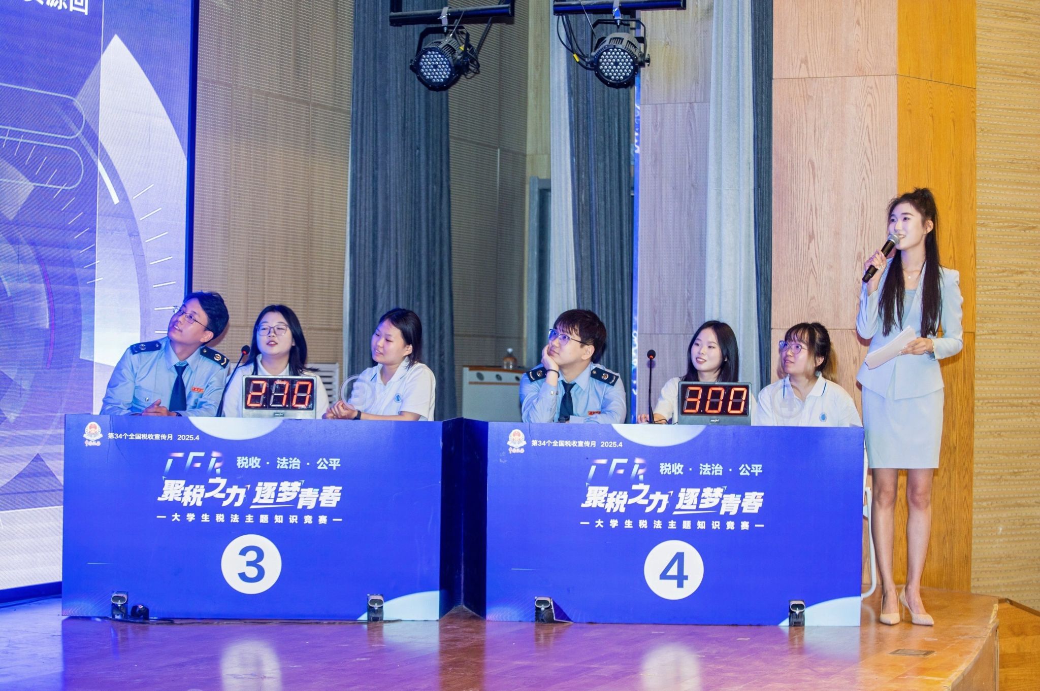 知識競賽活動采取稅務搭臺、高校唱戲、專家點評的形式,由未央?yún)^(qū)稅務局青年干部與我校學生混編組成的4支參賽隊伍展開激烈交鋒。競賽設(shè)置“一展風采、團隊協(xié)作、奮勇爭先、放手一搏”等環(huán)節(jié),參賽隊伍圍繞大學生創(chuàng)業(yè)就業(yè)稅收優(yōu)惠、個人所得稅專項附加扣除、社保費繳納流程等民生關(guān)切的熱點問題展開智慧碰撞。此次競賽既展現(xiàn)了新時代稅務青年的專業(yè)素養(yǎng),又讓大學生們在沉浸式體驗中掌握了“帶得走、用得上”的稅費知識,真正實現(xiàn)了稅法宣傳“零距離”、稅校協(xié)作“深融合”。