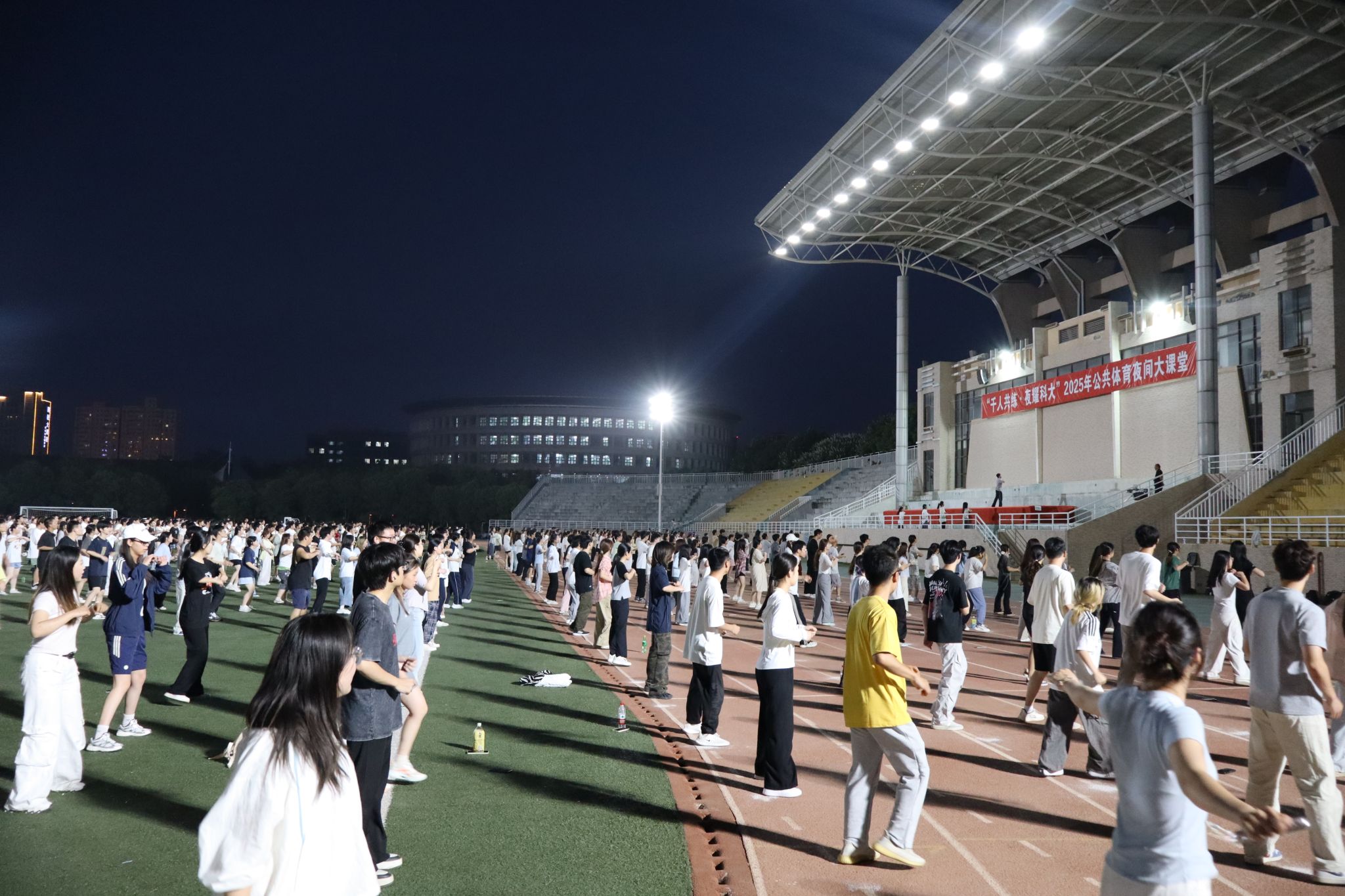 為深入貫徹“健康第一、五育并舉”的教育理念,強化課堂教學在體育育人中的核心作用,通過課堂教學引導學生積極參與運動、感受運動樂趣、養成運動習慣,體育部于5月12日正式推出“千人共練?夜耀科大”2025年公共體育夜間大課堂。大課堂開設在學校標準田徑場,采取體育教師領操、其他教師輔助,學生集體參與跳操的組織形式,課堂教學分為八段錦和健身操兩個環節,并全程配以專業運動音樂,每晚有近2000名學生參與到體育大課堂教學活動中來,整個夜間大課堂將持續兩周時間。