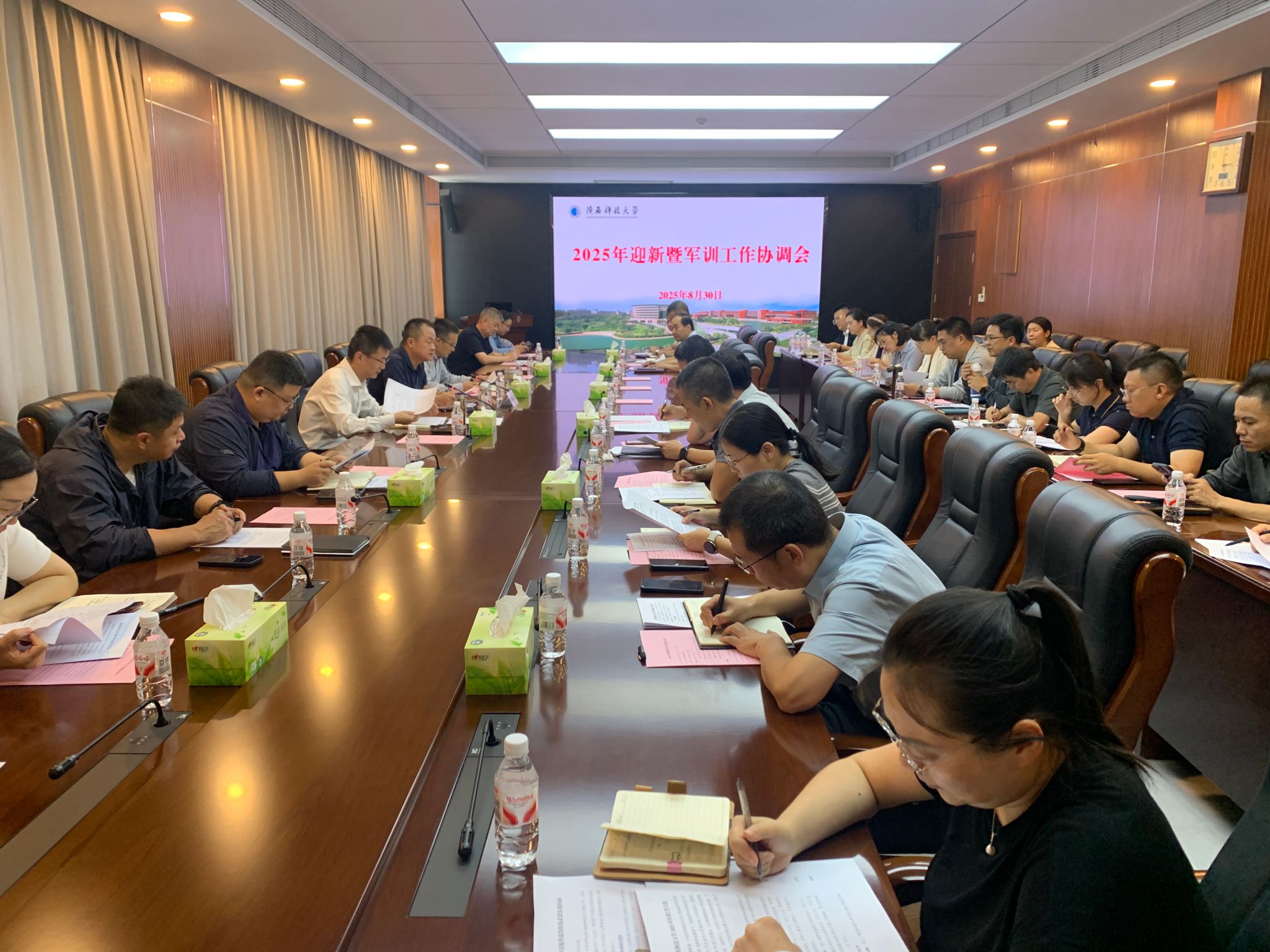 8月30日,我校2025年迎新暨軍訓工作協調會在逸夫樓506會議室召開。黨委副書記李學軍主持會議并講話,副校長費貴強出席,相關職能部門負責人、各學院學生工作負責人參加會議。