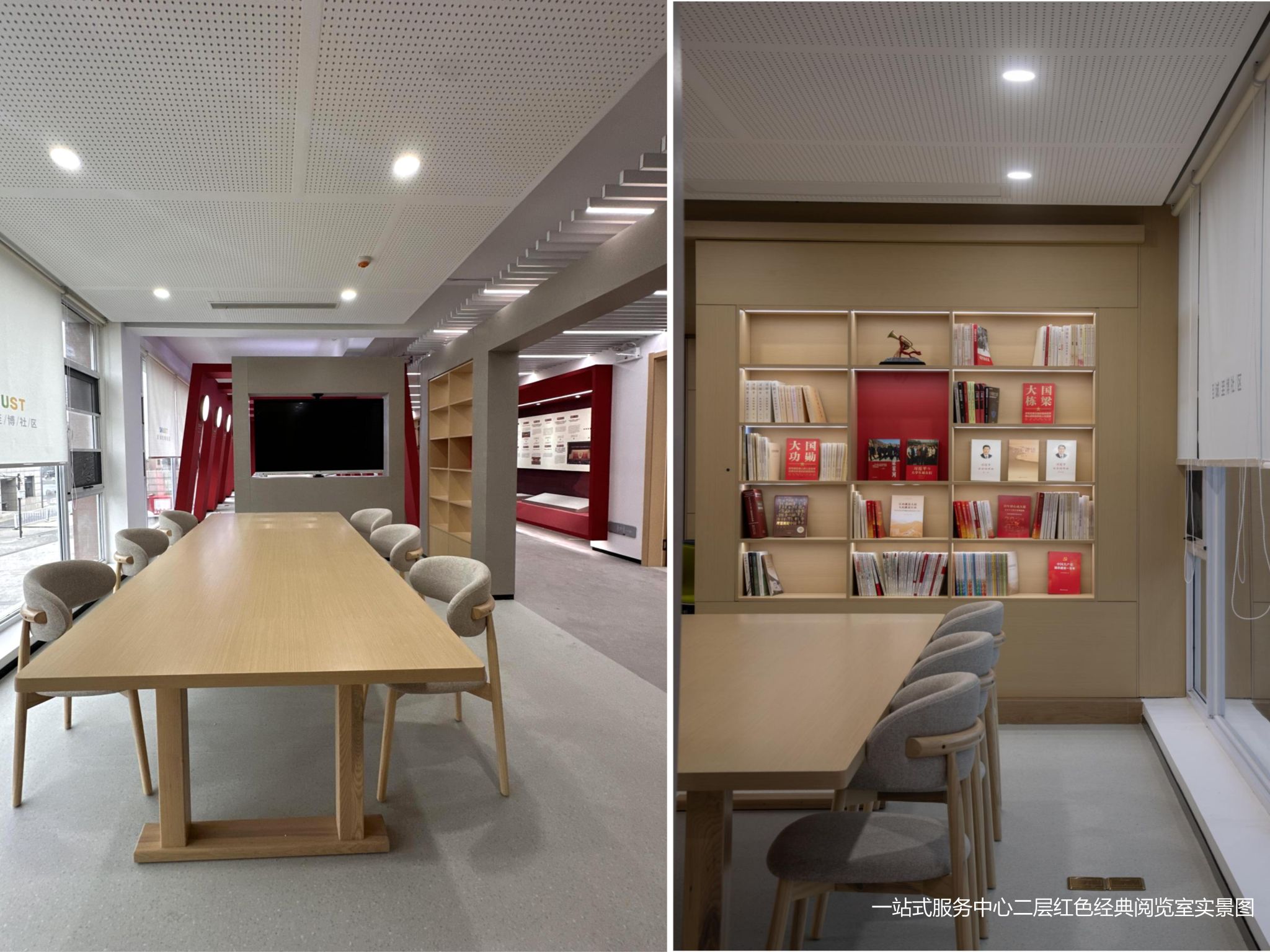 中心注重突出黨建引領的思政育人功能,在二樓建成了黨員之家、紅色經典閱覽室、輔導員之家和若干黨團班活動室。黨員之家以窯洞為造型,寓意傳承和弘揚延安精神,迎面懸掛黨旗、鐫刻入黨誓詞,立柱展示中國共產黨人精神譜系的偉大精神,沉浸式環境涵養紅色基因;輔導員之家將系統展示我校輔導員隊伍建設的思路、成果及成效,服務我校輔導員隊伍研學研討,推動隊伍職業化專業化發展;紅色經典閱覽室配備系列黨的歷史與黨建方面書籍,服務廣大黨員閱讀研討紅色經典;輔導員之家、紅色經典閱覽室、黨員之家空間聯通,充分體現了思想政治工作學與做、教與學的知行合一與育人主旨;黨團班活動室設有兩個,一個可容納70余人共同使用,并可以隨時關閉隔離門分割為兩個互不干擾的獨立活動室使用,另一個可容納近60人共同使用,全部配備自由移動桌椅和電子屏幕,為學生黨支部、團支部及班級活動開展提供可容納不同人數的空間場地和賦能增效的現代化設施支持,服務黨團班探索開展高質量、沉浸式、互動性集體活動。