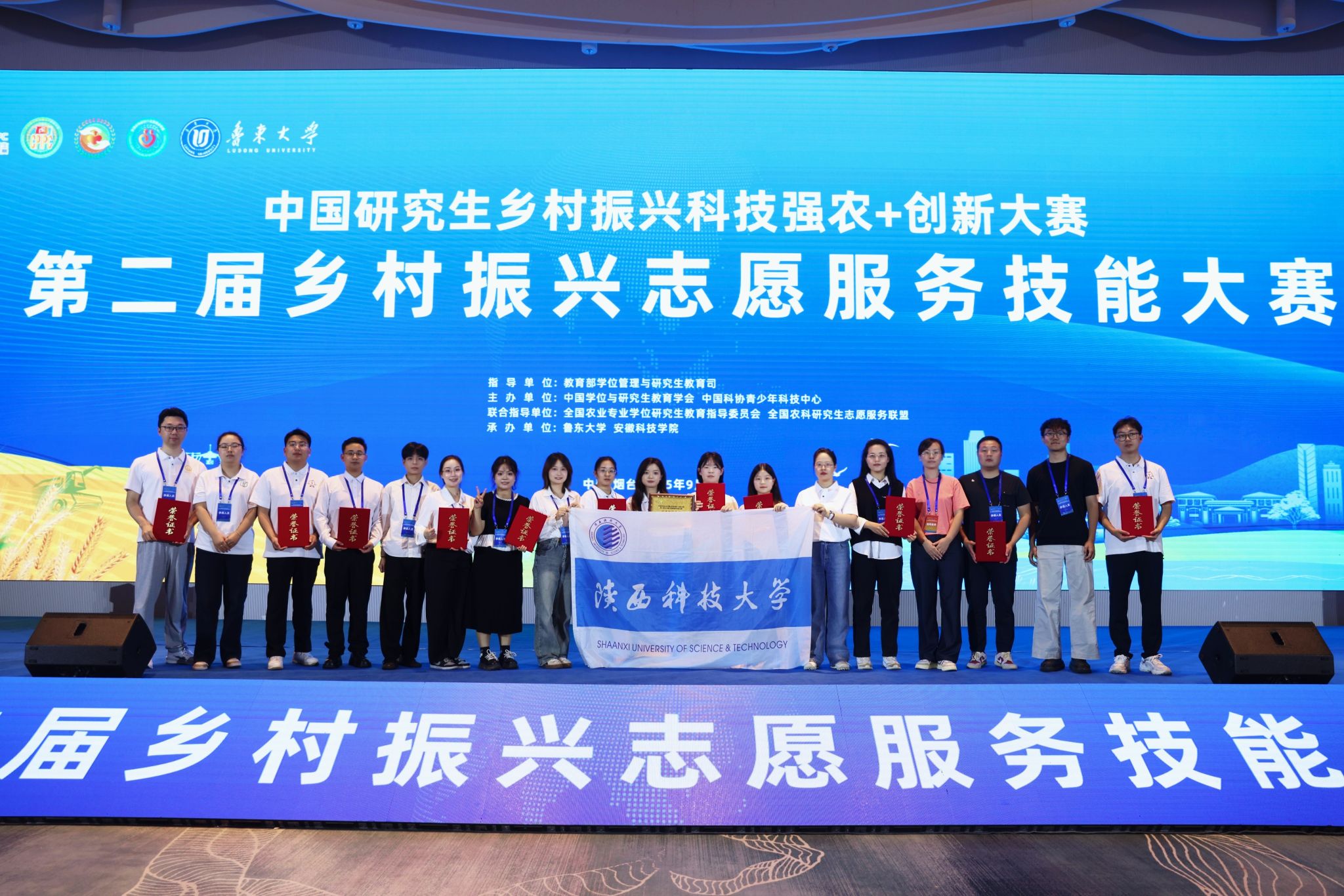 9月19日至22日,由中國學(xué)位與研究生教育學(xué)會(huì)、中國科協(xié)青少年科技中心聯(lián)合主辦,教育部學(xué)位管理與研究生教育司、全國農(nóng)業(yè)專業(yè)學(xué)位研究生教育指導(dǎo)委員會(huì)、全國農(nóng)科研究生志愿服務(wù)聯(lián)盟指導(dǎo),魯東大學(xué)、安徽科技學(xué)院共同承辦的“中國研究生鄉(xiāng)村振興科技強(qiáng)農(nóng)+創(chuàng)新大賽·第二屆鄉(xiāng)村振興志愿服務(wù)技能大賽”在山東煙臺(tái)舉辦。經(jīng)過激烈角逐和嚴(yán)格評(píng)審,我校研究生團(tuán)隊(duì)表現(xiàn)優(yōu)異,共斬獲國家級(jí)獎(jiǎng)項(xiàng)8項(xiàng),其中二等獎(jiǎng)5項(xiàng)、三等獎(jiǎng)3項(xiàng),學(xué)校榮獲優(yōu)秀組織單位獎(jiǎng)。