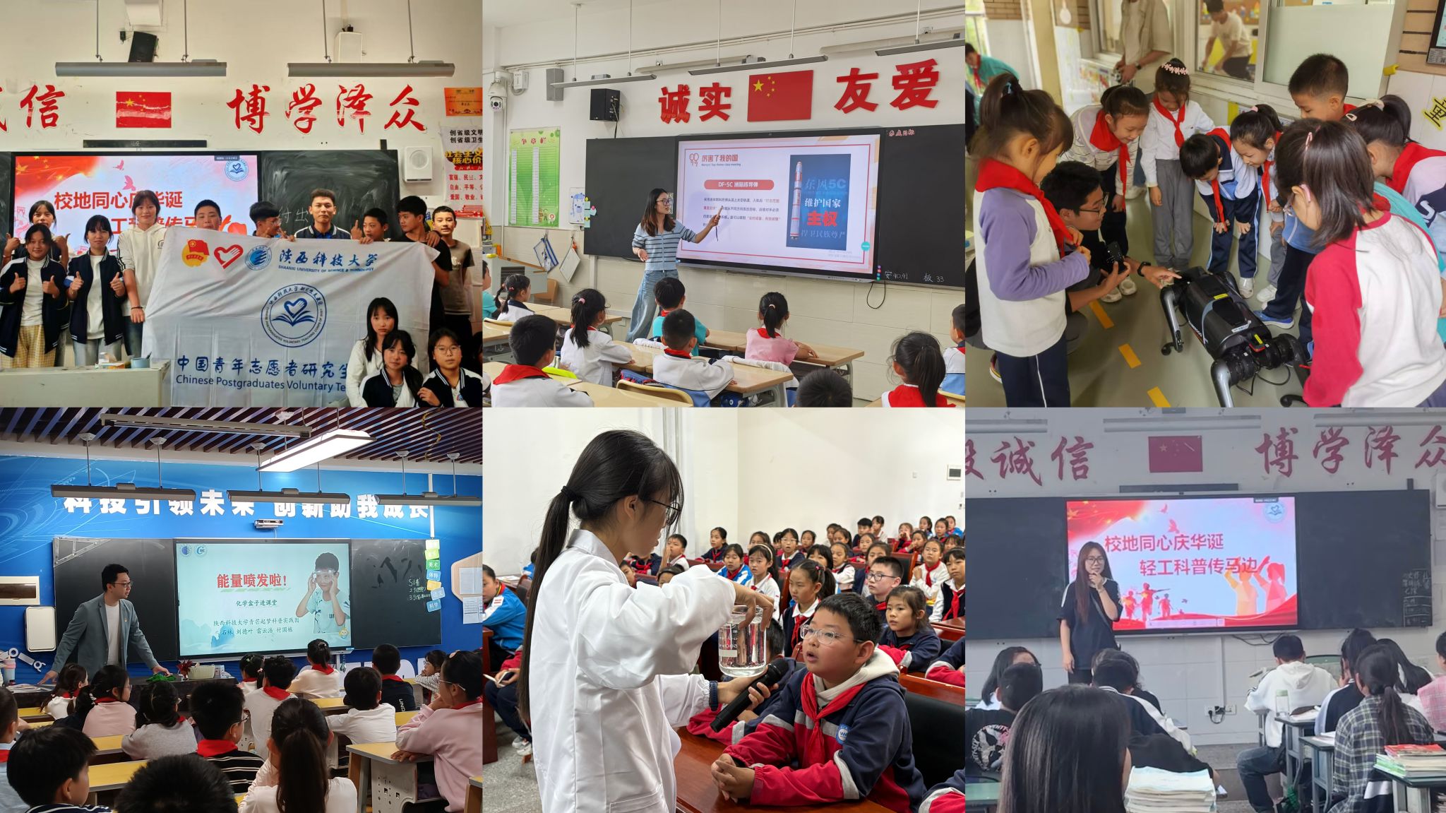 化工學院筑夢領航研究生黨支部等多名優秀黨員與新生代表走進新興小學、經開一小,帶去了以“趣味解鎖科學大門”為主題的化學科普秀,“大象牙膏”“火山噴發”“變色玫瑰”等趣味實驗引得孩子們驚呼連連。機電學院研究生代表攜“紅心迎國慶·科創進校園”活動走進經開五小,通過展示了無人機、3D打印筆等研究生自主研發的科創作品,為小學生講述了錢學森、袁隆平等科學家的科研攻堅與報國故事,讓拳拳愛國心、殷殷報國志在孩子們心中生根發芽。