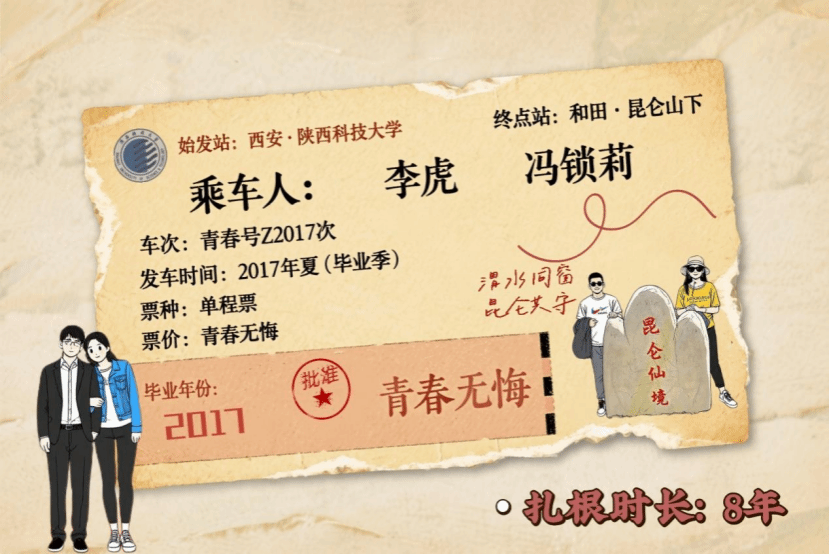 幾乎沒有猶豫,李虎毅然解除了國企協議。兩張簽往和田的就業協議,將“畢業即分手”的憂慮,化作了“畢業即相守”的篤定。2017年7月18日,前往和田的列車自西安站駛離,李虎與馮鎖莉的愛情和理想,終在祖國的西陲找到了交匯點:新疆和田。
