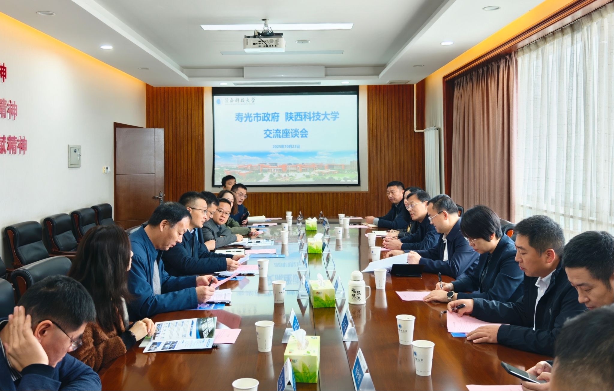 10月23日,山東省壽光市政府副市長張東光一行來陜西科技大學交流座談。副校長費貴強出席會議并致辭,科技處處長朱建鋒主持會議。