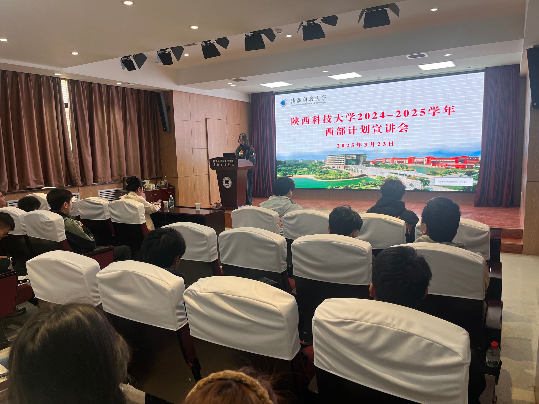 為深入貫徹落實(shí)習(xí)近平總書(shū)記關(guān)于青年工作的重要思想,引導(dǎo)青年學(xué)子厚植家國(guó)情懷、勇?lián)鷷r(shí)代使命,積極響應(yīng)國(guó)家號(hào)召投身西部建設(shè),扎實(shí)推進(jìn)我校2025年大學(xué)生志愿服務(wù)西部計(jì)劃工作實(shí)施。3月23日上午,由校團(tuán)委主辦,輕工學(xué)院團(tuán)委承辦的“西部計(jì)劃學(xué)長(zhǎng)學(xué)姐說(shuō)”——陜西科技大學(xué)2025年大學(xué)生志愿服務(wù)西部計(jì)劃主題宣講會(huì)在輕工學(xué)院實(shí)驗(yàn)樓一樓報(bào)告廳舉行。本次宣講會(huì)共吸引來(lái)自全校15個(gè)學(xué)院的200余名學(xué)生到場(chǎng),校團(tuán)委及輕工學(xué)院團(tuán)委相關(guān)工作人員、往屆西部計(jì)劃優(yōu)秀志愿者代表、第24屆研究生支教團(tuán)部分成員參加此次活動(dòng)。