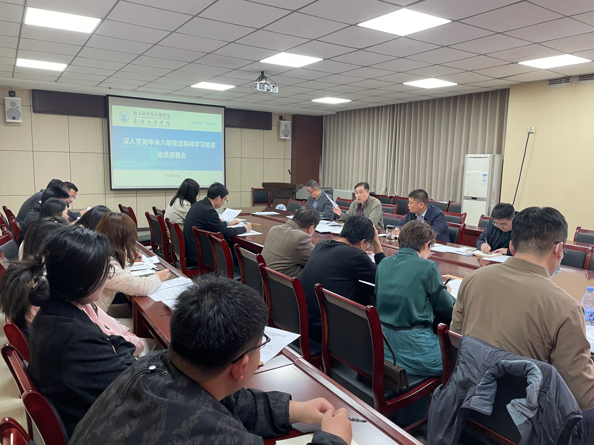 3月25日,輕工科學與工程學院(柔性電子學院)召開深入貫徹中央八項規定精神學習教育工作部署會,學院黨委書記李新平主持會議并講話,黨委委員、組織員、各黨支部書記參加會議。