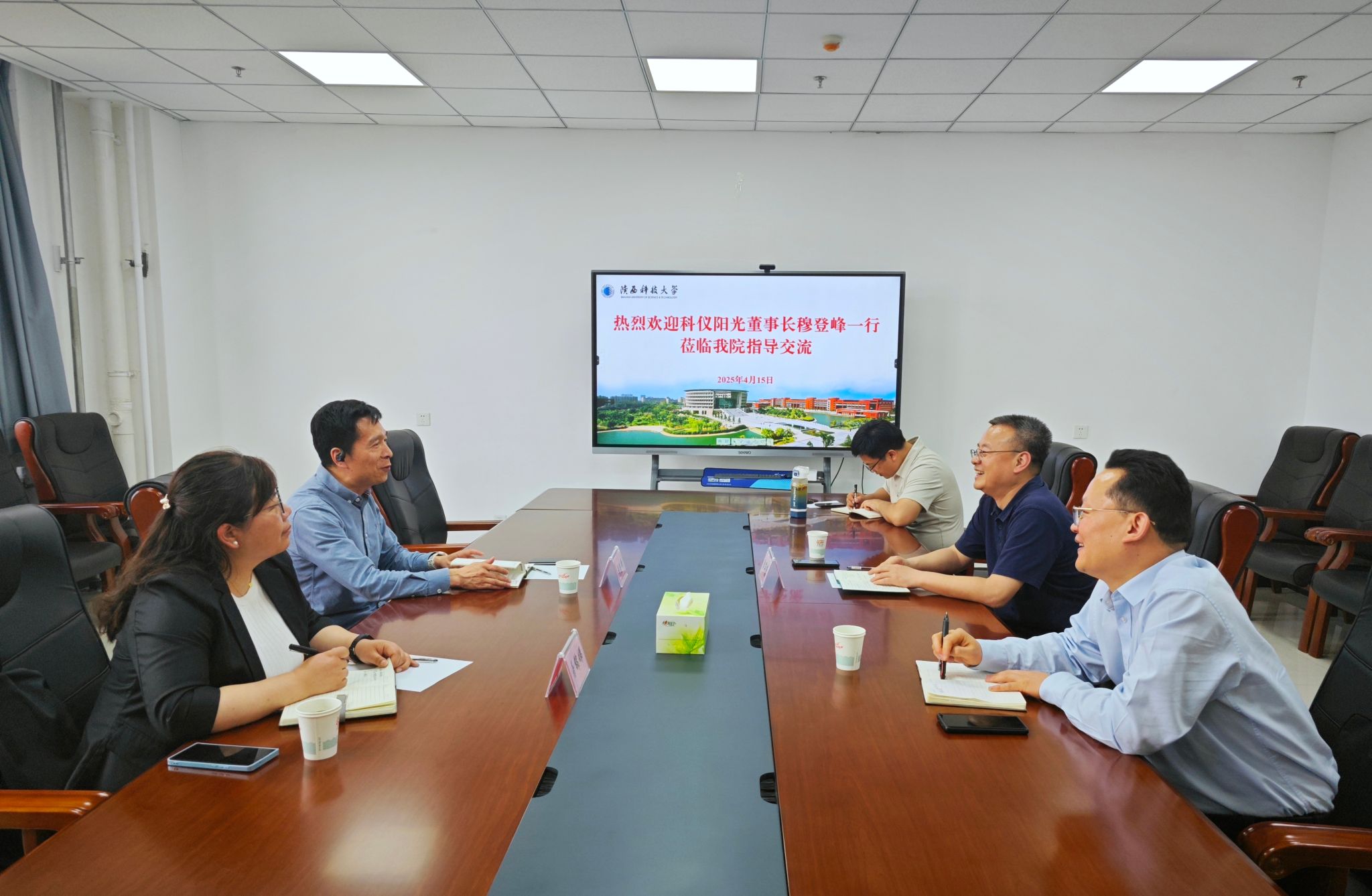 郭軍康對穆登峰一行的到來表示熱烈歡迎,并從學院發展歷程、科學研究、人才培養、師資隊伍、社會服務等方面對學院的基本情況做了介紹,希望通過開展務實合作,實現資源互補,助推環境治理關鍵技術新突破、提升人才培養質量力促畢業生高質量就業,更好服務地方經濟社會發展。穆登峰介紹了科儀陽光公司概況,他認為陜科大及環境學院近年來積極發展、主動作為的精神令人欽佩,期待雙方盡快確定合作細分領域、建立機制,助力人才培養精準化,實現校企跨界融合。交流中,雙方在開展實踐教學、共編教材、項目聯合研發、學生聯合培養、畢業生實習就業等方面達成合作框架,為進一步深化合作奠定了堅實基礎。