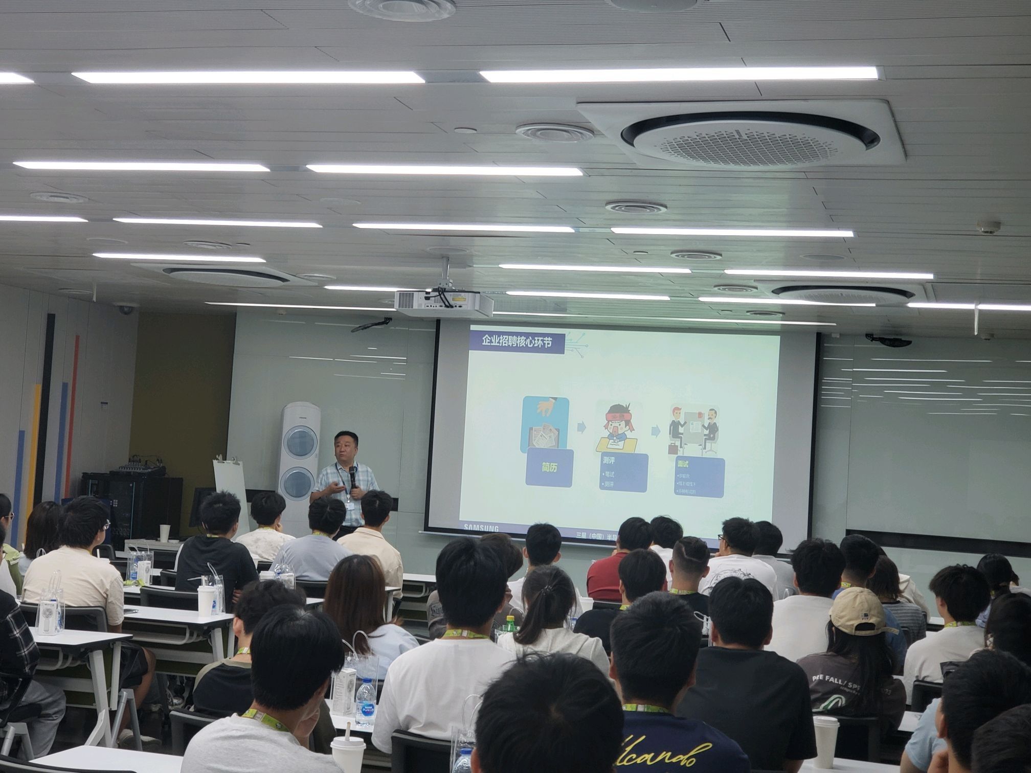 在三星企業(yè)文化館——芯空間,師生們?cè)敿?xì)了解半導(dǎo)體的發(fā)展歷史、制造工藝和社會(huì)應(yīng)用;在全自動(dòng)化智能生產(chǎn)車(chē)間,師生們切身體會(huì)國(guó)際化高科技制造企業(yè)的職場(chǎng)環(huán)境和創(chuàng)新氛圍;在文化活動(dòng)場(chǎng)館與員工培訓(xùn)中心,師生們現(xiàn)場(chǎng)感受公司企業(yè)文化和人文關(guān)懷。參觀學(xué)習(xí)過(guò)程中,企業(yè)技術(shù)專家圍繞半導(dǎo)體行業(yè)發(fā)展趨勢(shì)與崗位需求進(jìn)行了專題分享,幫助學(xué)生拓寬行業(yè)視野、厘清職業(yè)方向。人力資源部門(mén)負(fù)責(zé)人以詳實(shí)案例介紹了簡(jiǎn)歷制作技巧與面試應(yīng)對(duì)策略,為學(xué)生即將面臨的求職過(guò)程提供了實(shí)用指導(dǎo)。