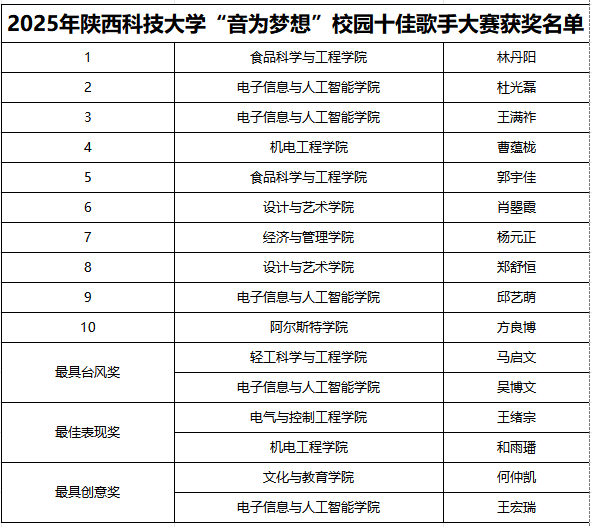 陜西科技大學(xué)2025年“音為夢(mèng)想”十佳校園歌手大賽決賽圓滿落幕