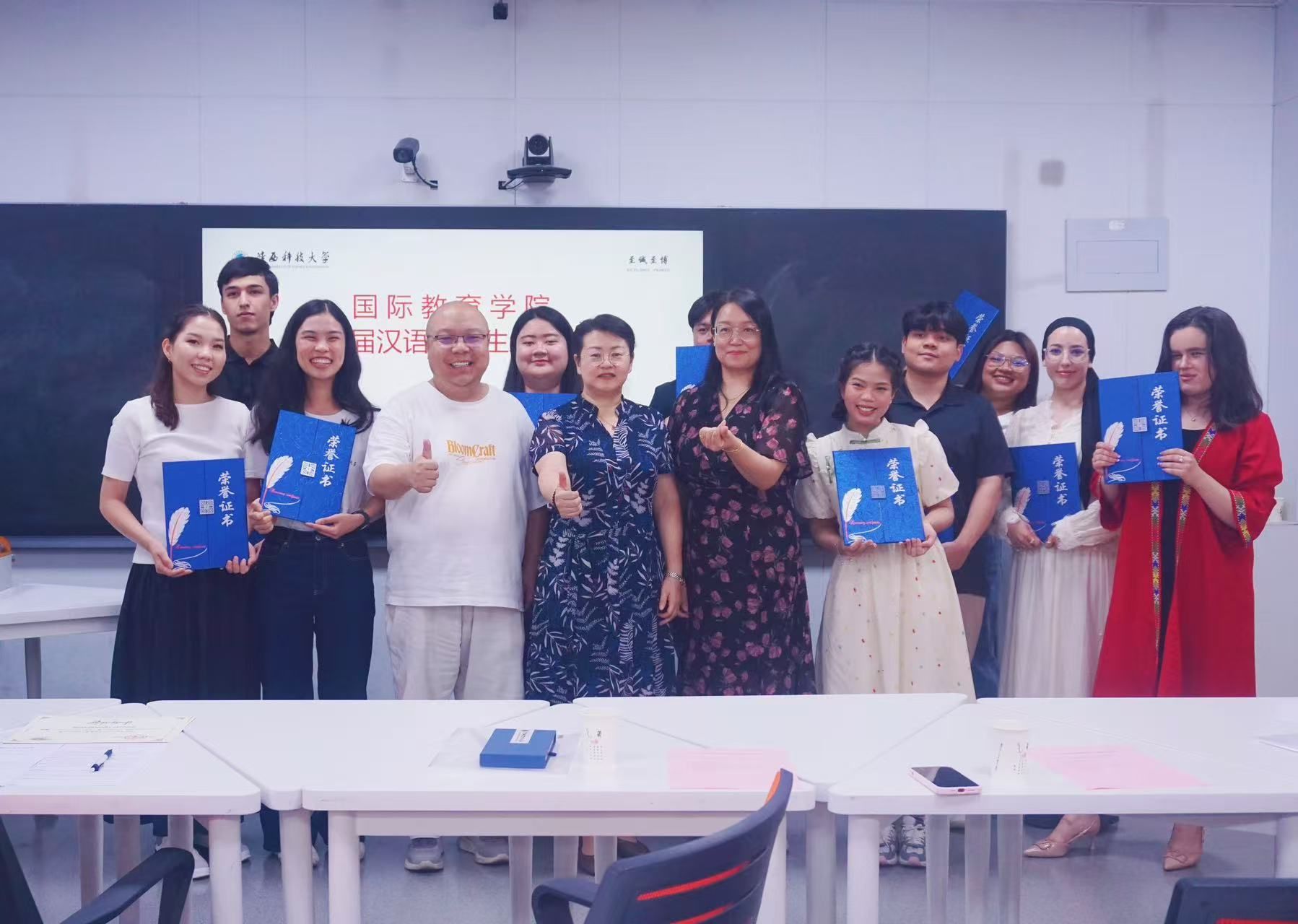 典禮迎來兩大高光環節:張素風院長莊重頒發優秀學員證書予10名國際生,緬甸學生Mi Mi San Shein代表感言成長蛻變;隨后4名中亞學子接獲本科錄取通知書,院長勉勵其以漢語為鑰開啟專業深造,擔當中外合作橋梁。