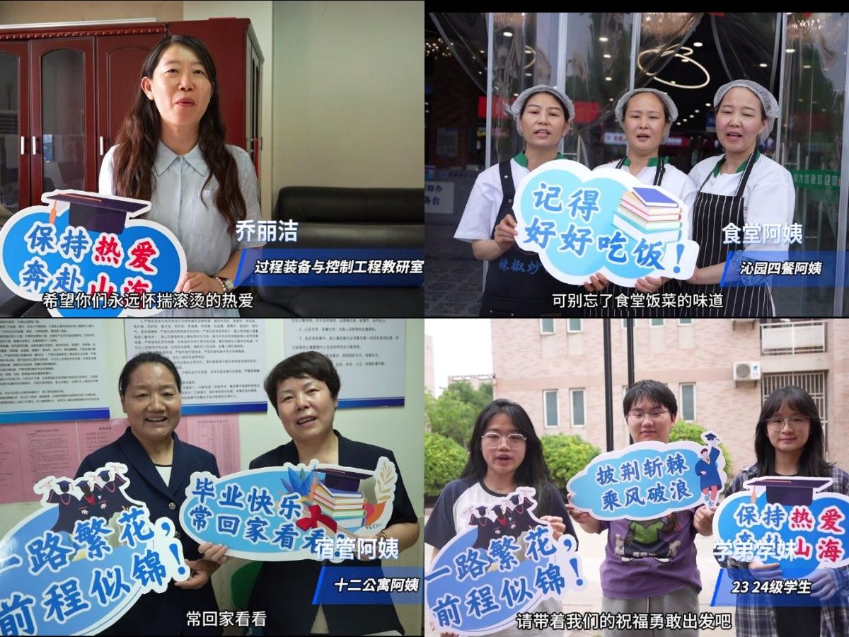 青春相伴憶芳華,畢業(yè)啟航送祝福。當(dāng)蟬鳴攀上盛夏,又是鳳凰花開的季節(jié)。學(xué)院網(wǎng)絡(luò)文化中心用鏡頭記錄教研室老師、學(xué)弟學(xué)妹、食堂阿姨、宿管阿姨、保安叔叔對畢業(yè)生的深深祝福。有青春相伴的珍貴回憶,有前程似錦的真摯祝福,有“好好吃飯,天冷加衣”的暖心叮嚀,更有“畢業(yè)快樂,一路順風(fēng)”的溫情祝福與囑托。希望畢業(yè)生們帶著這些溫暖與力量觸碰山間的紋理,激蕩熱愛和勇氣,在自洽的氛圍里盡情肆意。