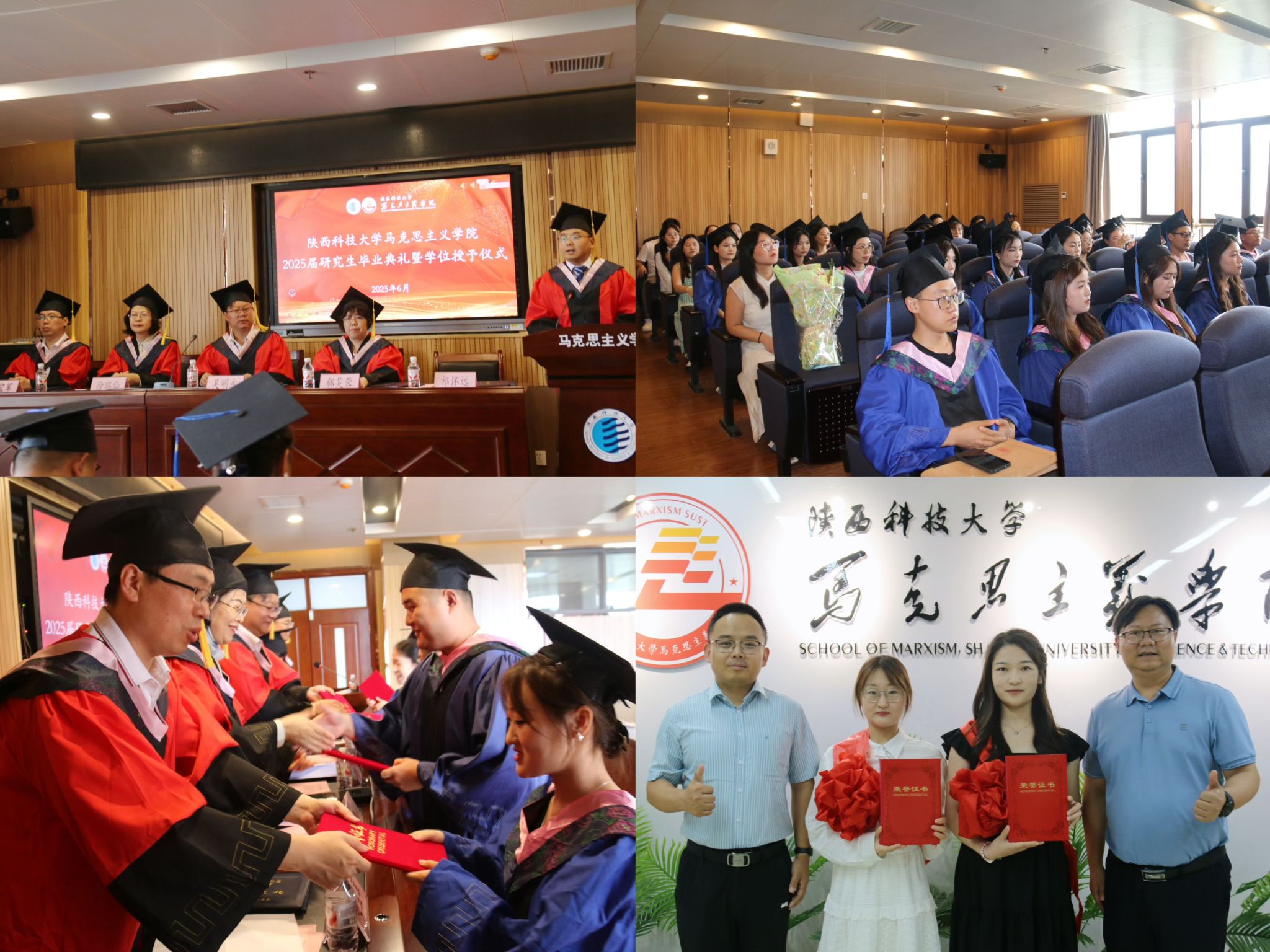 6月25日,馬克思主義學院2025屆畢業典禮于人文樓1014報告廳舉行,在全院師生及畢業生親友代表的共同見證下,院學術委員會成員為全體畢業生撥穗正冠。院長吳明永代表學院致辭,向學有所成、奔赴夢想的畢業生們表示最熱烈的祝賀。導師代表趙寶軍發言,以“在偉大變革中勇于突破自我”為題,深情囑托畢業生面對數字信息洪流,要做數字技術的駕馭者,也要做主流價值的守護者。優秀畢業生代表張文橋回首三載在校時光,深感理論學習與基層實踐完善了自己的智識與人格,并在畢業后選擇赴新疆生產建設兵團工作,扎根邊疆,在祖國最需要的地方貢獻青春力量。同時,學院為鼓勵廣大畢業生響應黨和國家的號召“到西部去、到基層去、到祖國最需要的地方去”,對兩名赴疆工作畢業生進行了表彰。