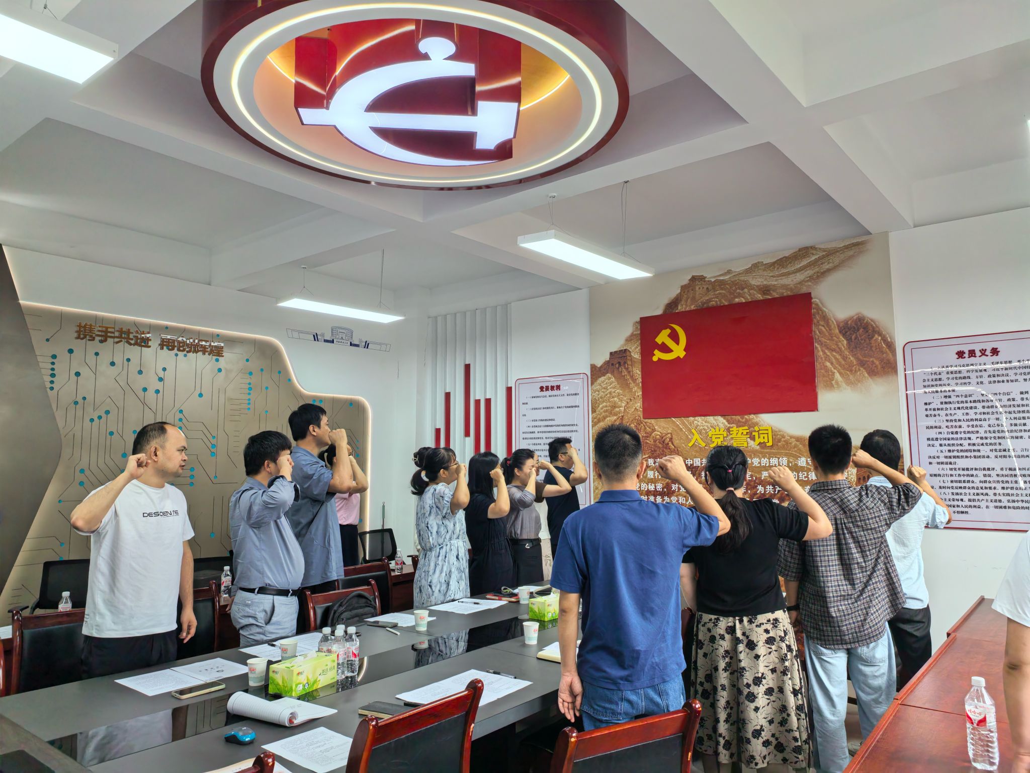 莊嚴宣誓啟新程。入黨宣誓儀式上,各黨支部為新黨員鄭重頒發“新黨員入黨紀念卡”。卡片銘刻著神圣的入黨誓詞,既是黨員政治生命的珍貴印記,更承載著終身踐行初心使命的莊嚴承諾。新老黨員面向鮮紅黨旗,高舉右拳,以鏗鏘誓言叩問初心,以赤誠之心淬煉黨性。這莊嚴時刻,激勵著全體黨員牢記宗旨,堅守信仰,砥礪前行。
