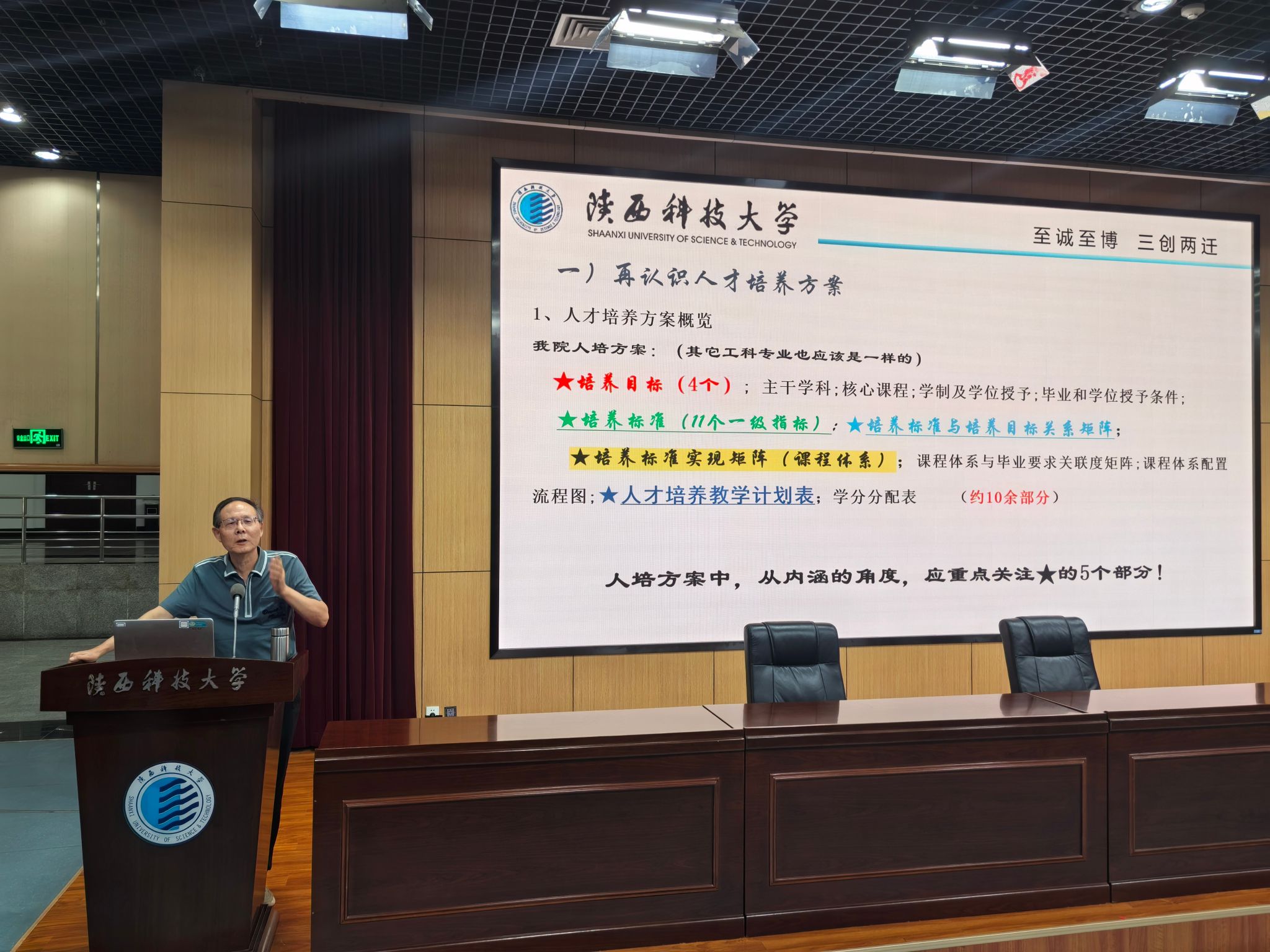 2025年7月9日,機電學院首場“機電名師講堂”于圖書館學術報告廳正式開講,學院全體教職工參與講座。本次講座特邀二級教授、博士生導師,陜西科技大學“誠博”師德標兵任工昌教授擔任主講,作題為《以人培方案為綱領 漫談本科教育教學——機械類本科專業教學之淺見》的專題報告。
