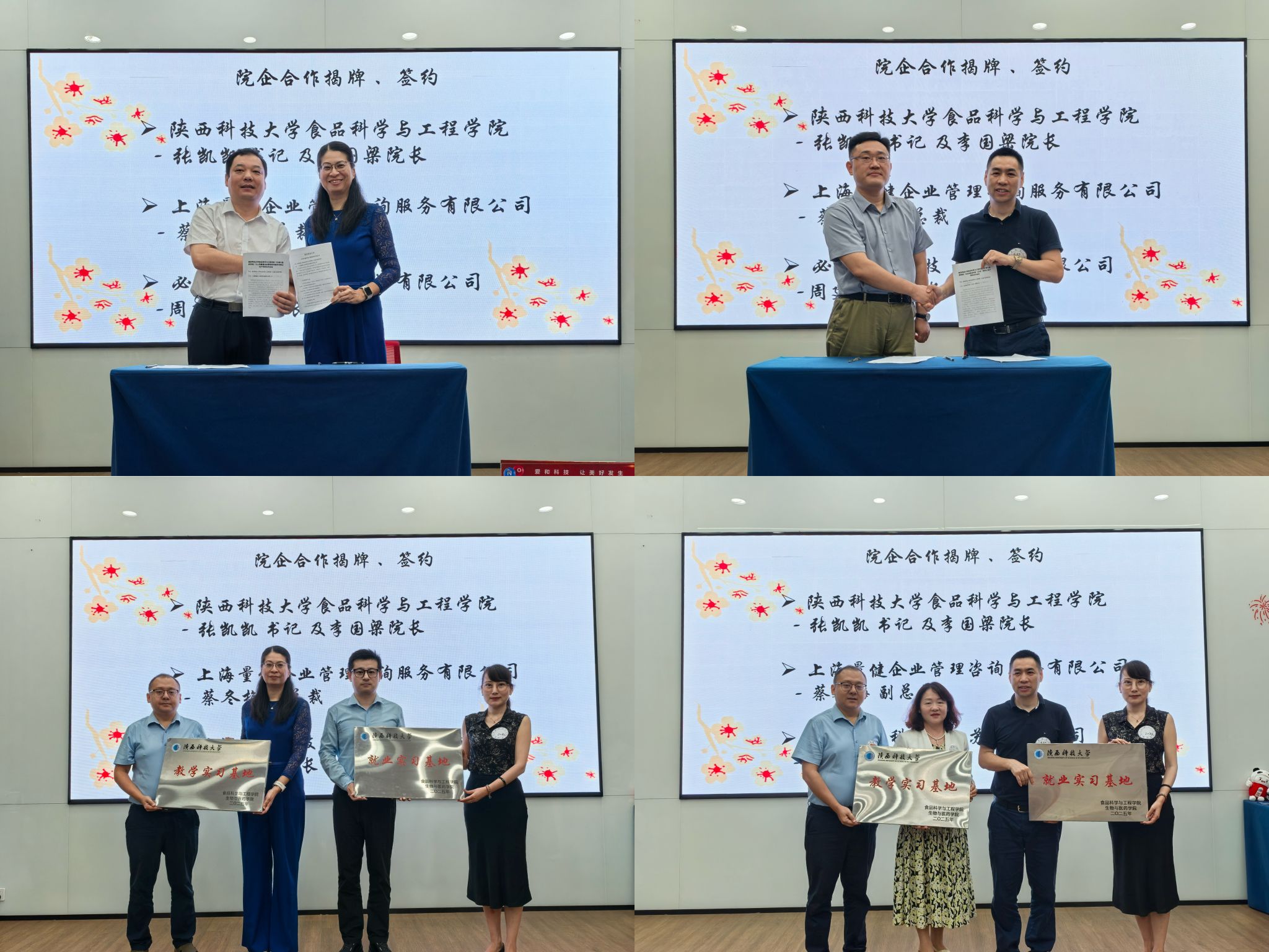 會議期間,食品學院與上海量健企業管理咨詢服務有限公司、必優食品科技(江蘇)有限公司舉行了院企合作簽約及授牌儀式,就共建高水平科研平臺、攜手校企聯合人才培養、暢通成果轉化機制等建立深度合作關系。
