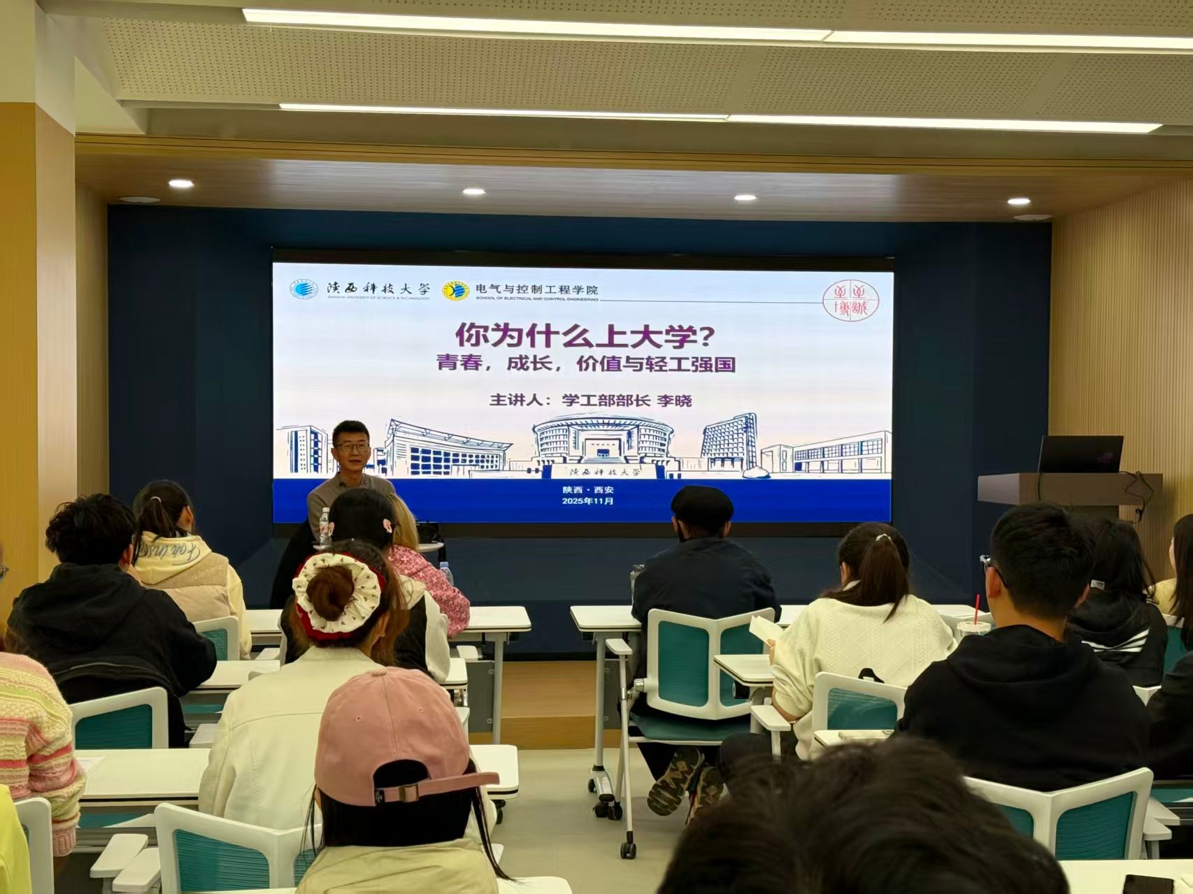 11月2日,學工部部長、學生處處長李曉以《你為什么上大學?——青春、成長、價值與輕工強國》為題,為電控學院2025級新生帶來了一堂生動的思政課。報告用深刻的思考、生動的案例和真摯的寄語引導同學們探尋大學意義、明確成長方向。