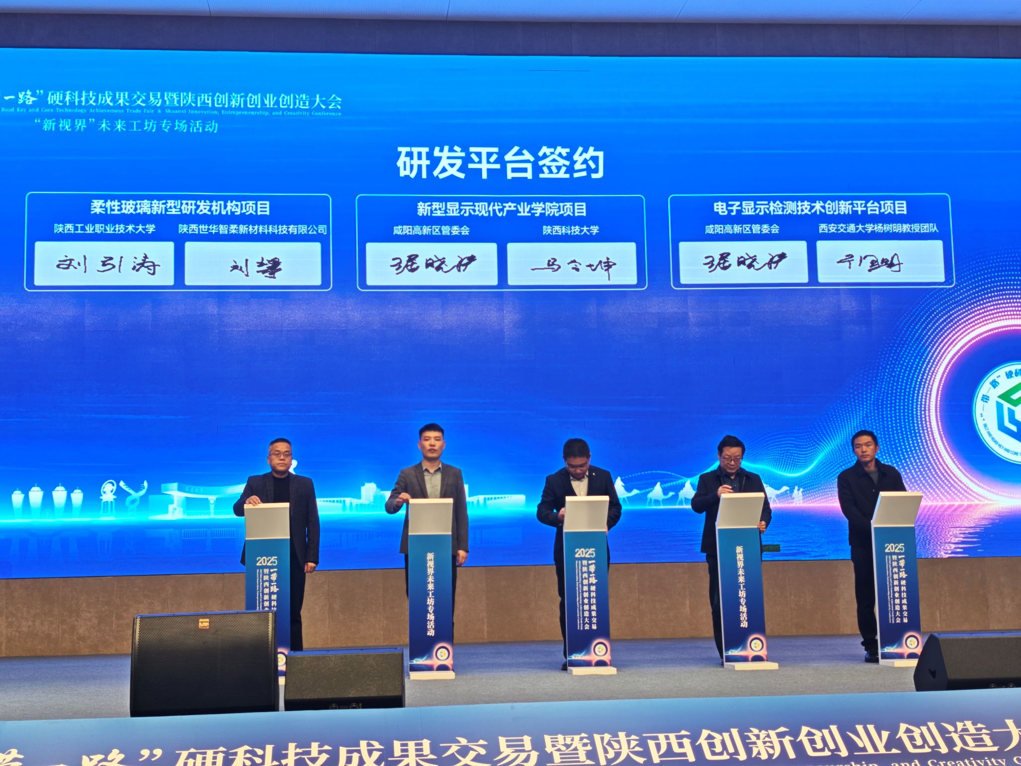 11月6日上午,電智學院院長馬令坤,光電系主任張方暉、黨支部書記王曉和部分教師代表受邀赴咸陽高新區,參加2025“一帶一路”硬科技成果交易暨陜西創新創業創造大會“新視界”未來工坊專場活動。活動現場,電智學院與咸陽高新區管委會正式簽署戰略合作協議,推動新型顯示現代產業學院落地咸陽,標志著電智學院服務地方產業發展進入深度融合新階段。
