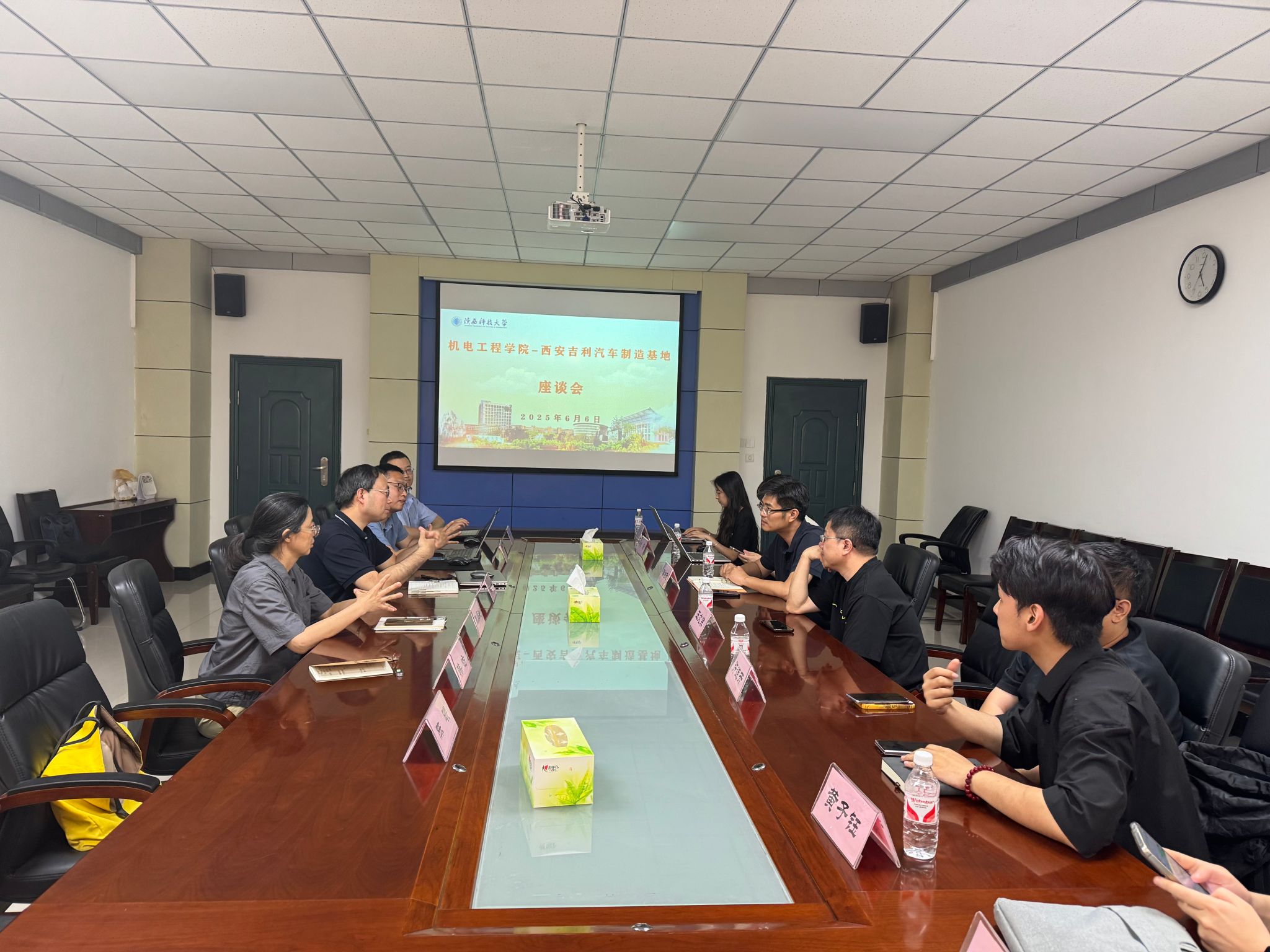 實習搭橋,開啟校企協同序幕。學生生產實習成為“星越班”合作的重要起點。今年5月,機電工程學院物流工程、機器人工程專業學生赴西安吉利汽車開展生產實習,期間展現出的扎實理論功底與務實工作作風,獲得企業高度認可。這一契機吸引西安吉利汽車智能制造團隊專程蒞臨學院,與智能制造工程教研室開展“智能制造前沿技術與相關課題”專題交流,雙方就產業技術需求、人才培養方向等話題深入探討,為校企進一步合作搭建起溝通橋梁,也讓“共建創新班”的合作思路逐漸清晰。