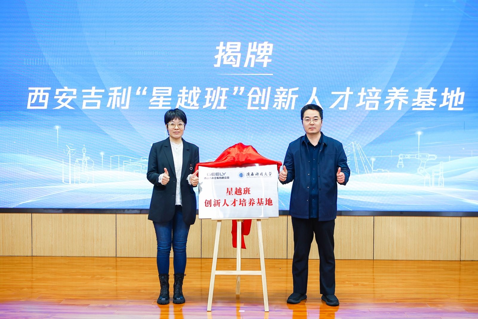 9月26日,“星越班”選拔宣講會在學校順利舉行,學院與西安吉利汽車相關領導及智能制造工程專業24級全體師生共同參與,詳細解讀班級培養模式與發展前景;10月17日,在智能制造產教融合創新聯合體成立大會上,西安吉利汽車人才經營部部長梁娟與陜西科技大學教務處處長李劍共同為“星越班”創新人才培養基地揭牌,標志著班級正式投入運行。
