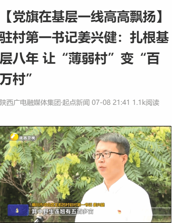 學習強國陜西學習平臺:陜西銅川市印臺區王石凹村駐村第一書記姜興健:扎根基層八年 讓“薄弱村”變“百萬村”