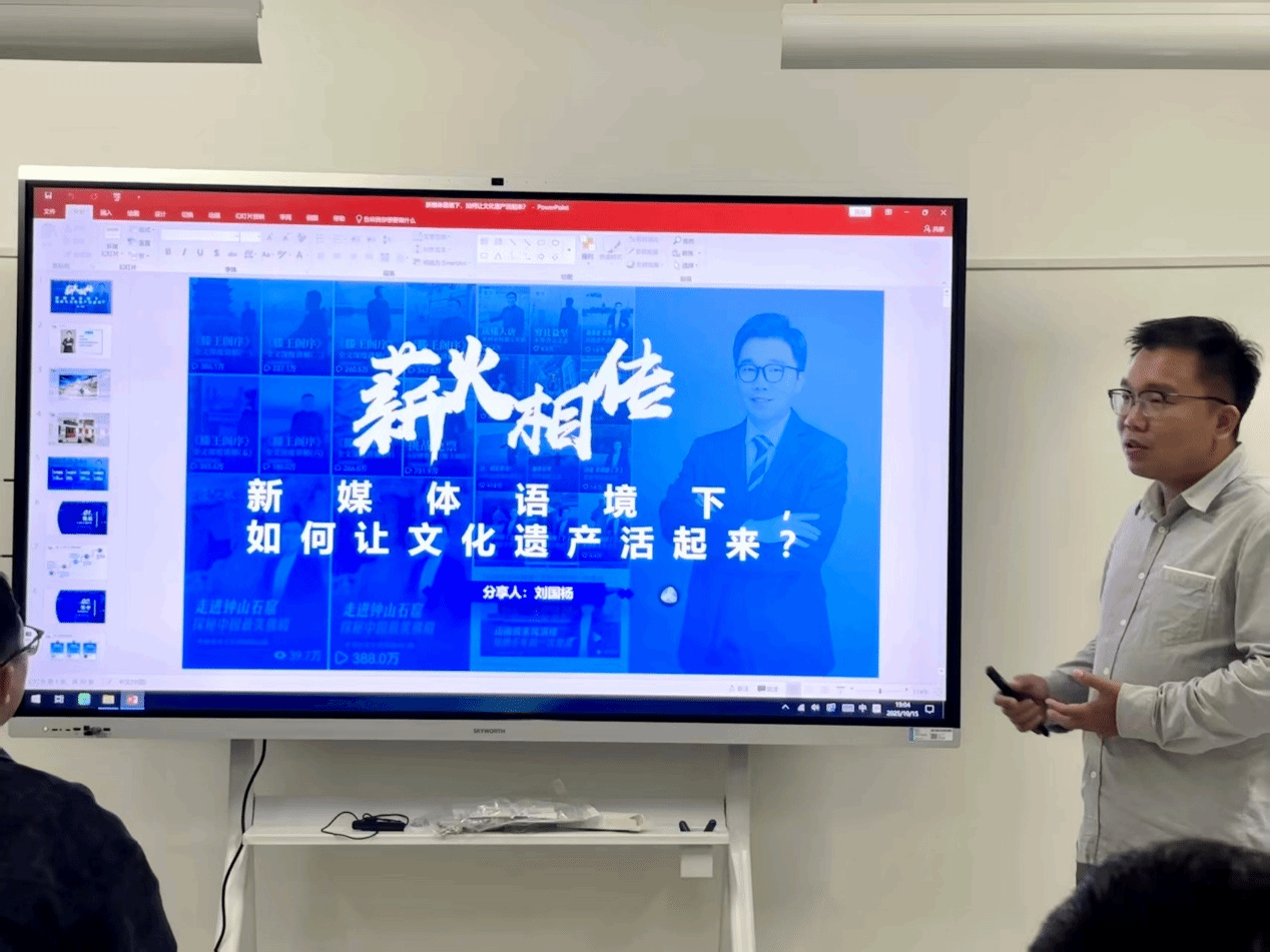 報告會上,劉國楊教授結合自身在文化傳播領域和自媒體領域的實踐和積累,從“扎根田野”“時空對話”“破壁表達”“跨界共創”四個維度出發,對如何將文化遺產與新媒體相結合,推動文化遺產活化做了詳細講述,表示一定要對文化遺產懷有敬畏之心,善于挖掘文化遺產背后的故事,肩負起傳播優秀傳統文化的時代使命。