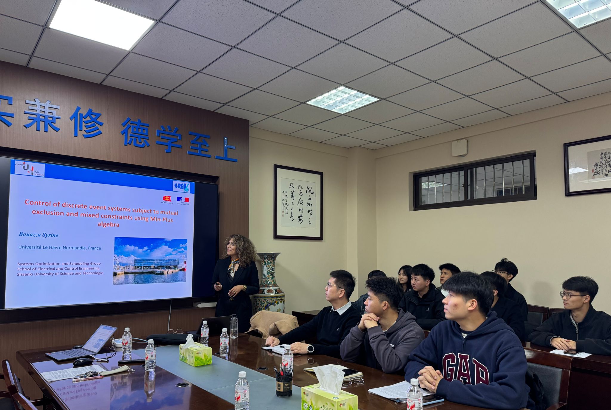 應我校國際合作與交流處、電氣與控制工程學院邀請,法國勒阿弗爾諾曼底大學(Le Havre Normandy University)物流與運輸管理系Syrine Bouazza副教授來訪我校,分別作了兩場專題學術講座,吸引了眾多相關師生積極參與。